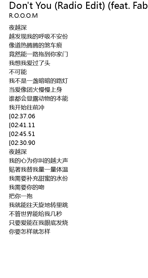 [03:03.82][02:45.51][02:28.26][01:42.70][01:03.21] Don' t You leave me