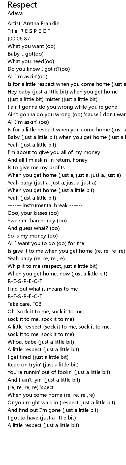 | [02:00.34] | A little respect (sock it to me, sock it to me, |