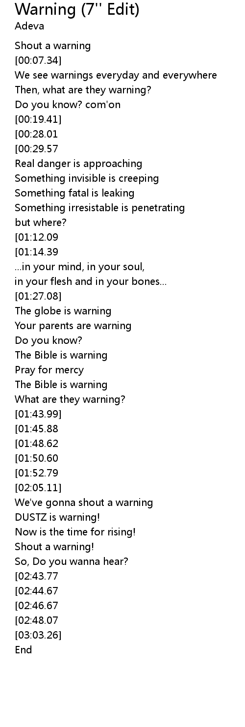 | [00:10.37] | We see warnings everyday and everywhere |
