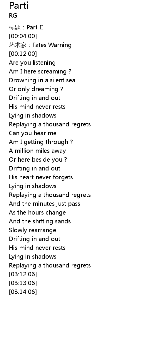 | [00:08.00] | yì shù jiā: Fates Warning |