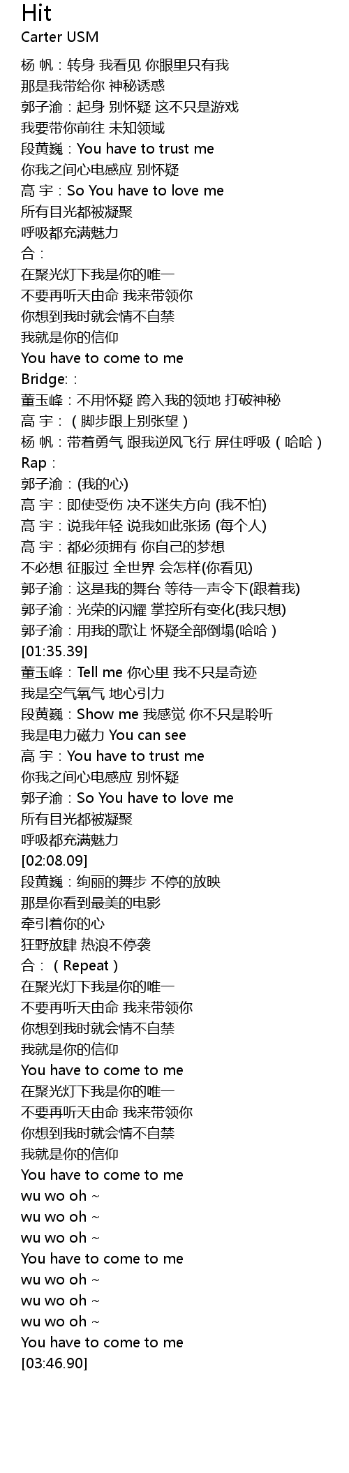 | [01:44.52] | 段黄巍:Show me 我感觉 你不只是聆听 |