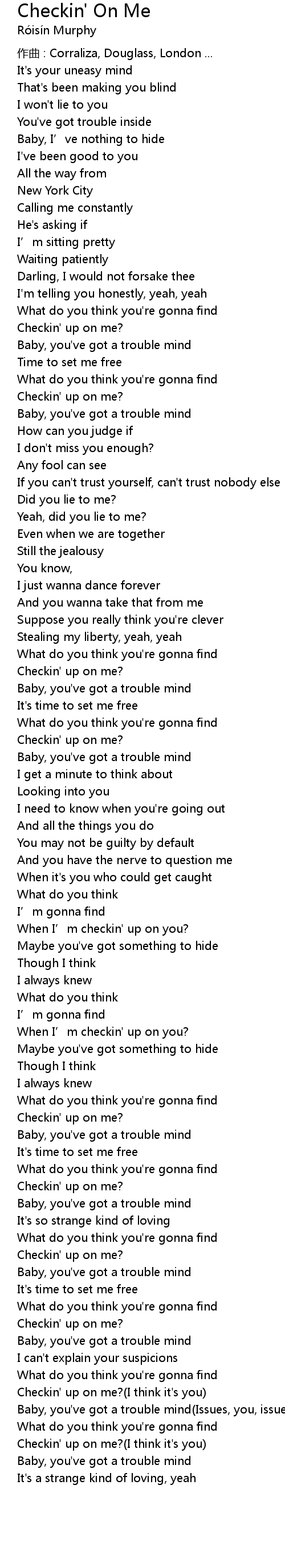 | Checkin' up on me? I think it' s you | |