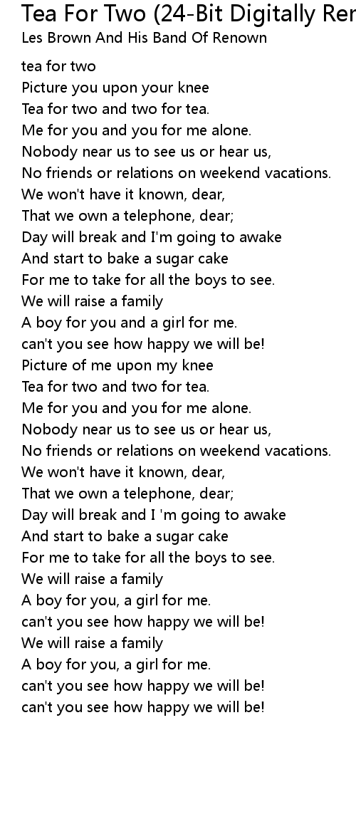 Tea for two and two for tea. |
