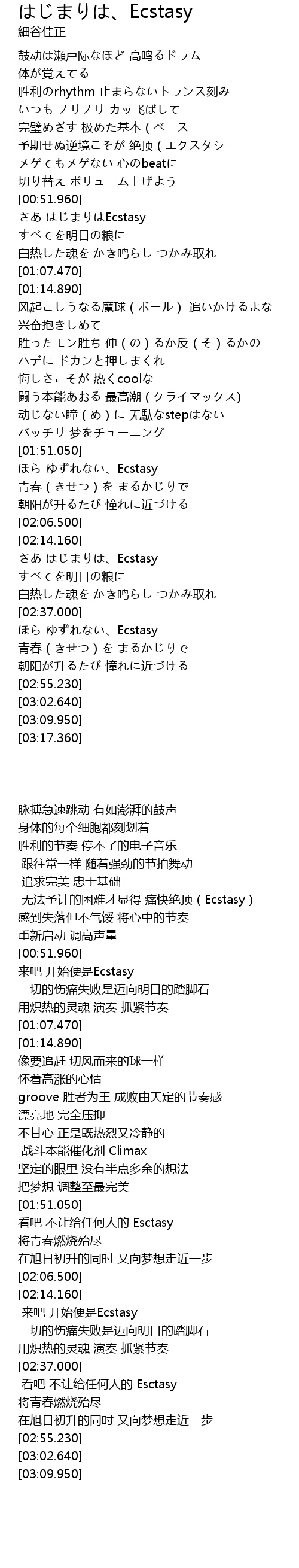 | [00:52.020] | さあ はじまりはEcstasy |