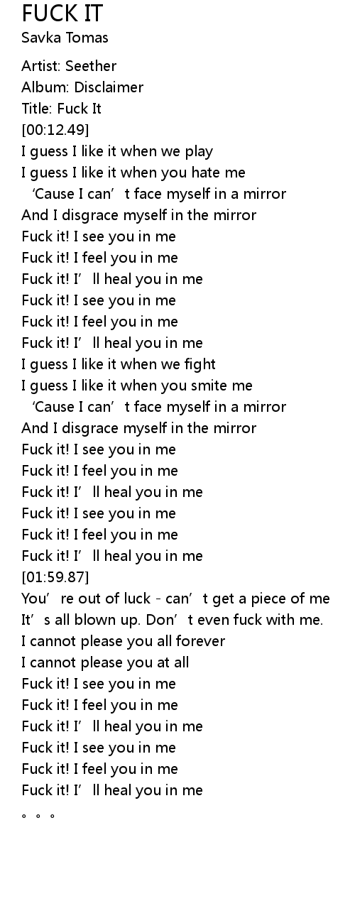 | [02:35.58] | Fuck it! I' ll heal you in me |