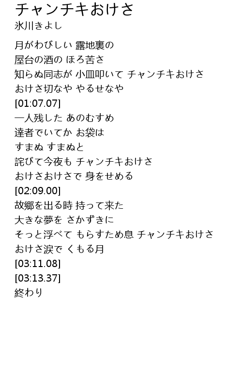 | [02:48.97] | そっと浮べて もらすため息 チャンチキおけさ |