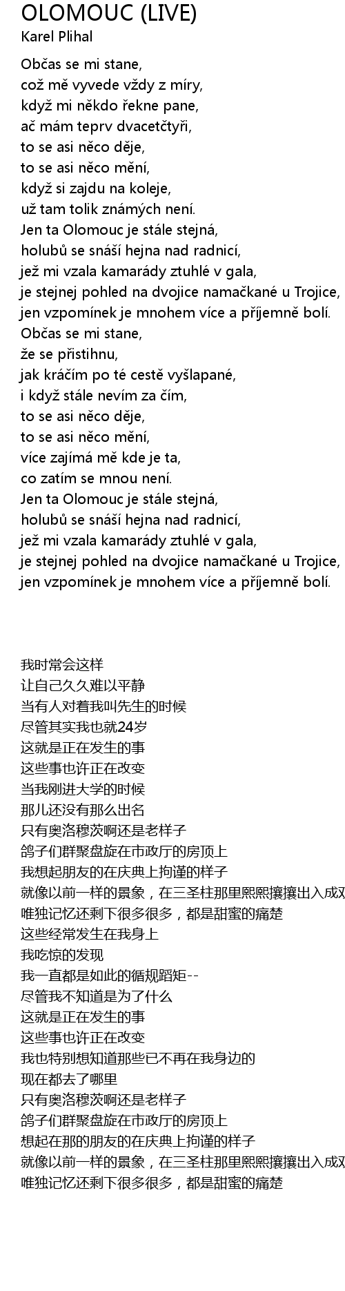 | [01:16.98] | Jen ta Olomouc je stále stejná, |