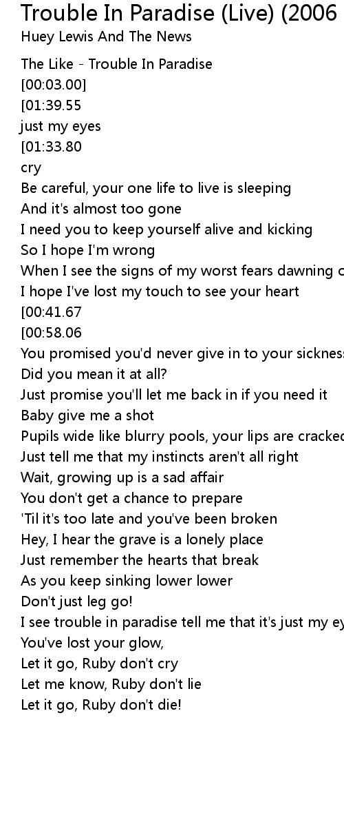 Trouble In Paradise (Live) (2006 Digital Remaster) Lyrics