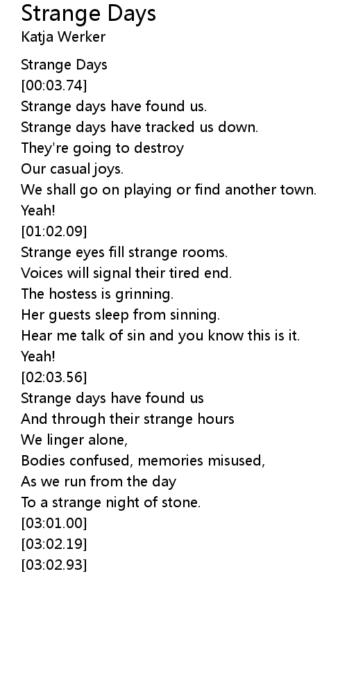 Strange days have tracked us down. |