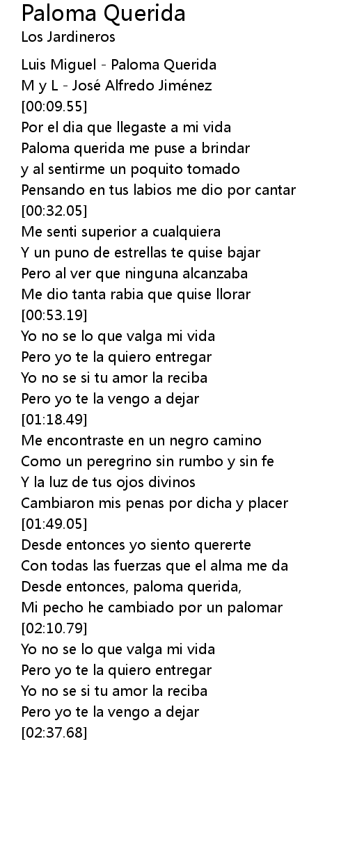 | [00:00.00] | Luis Miguel - Paloma Querida |
