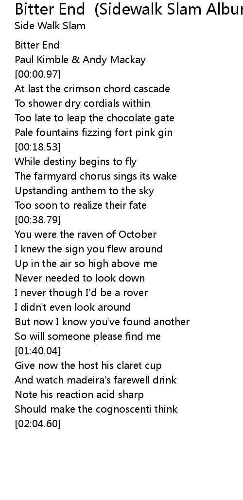Bitter End (Sidewalk Slam Album Version) Lyrics