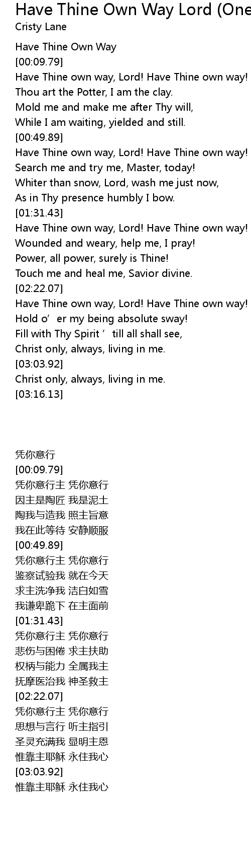 | [01:43.11] | Have Thine own way, Lord! Have Thine own way! |
