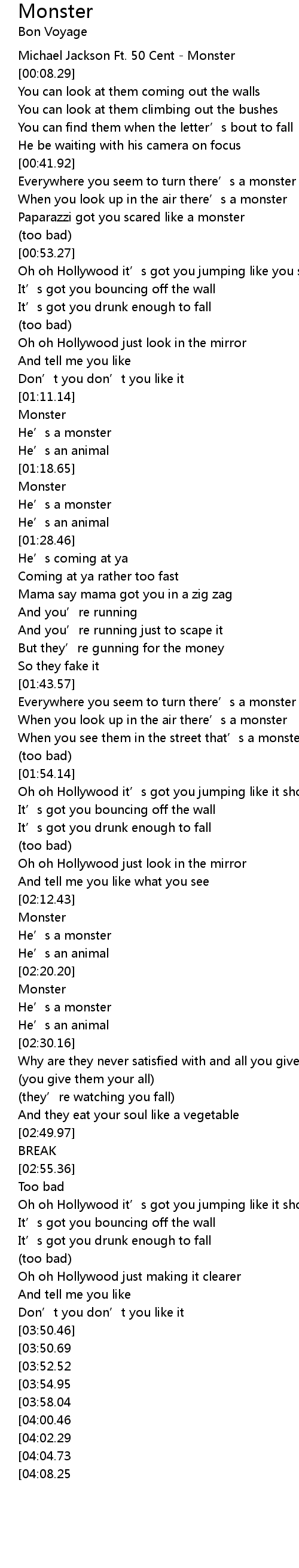 | [00:03.72] | Michael Jackson Ft. 50 Cent Monster |