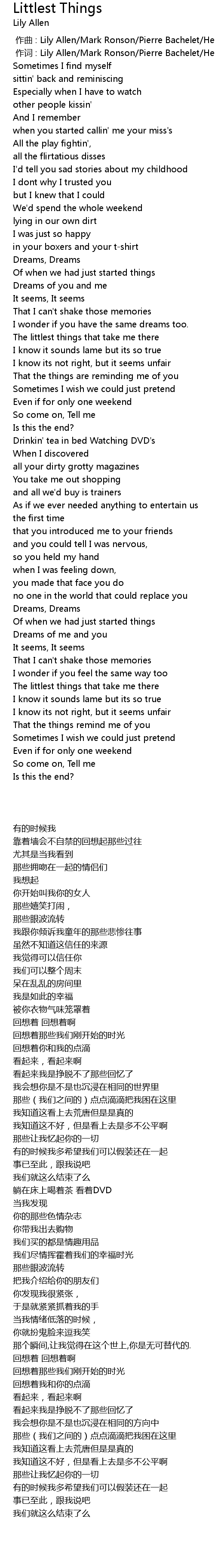 | [00:01.00] | zuo ci : Lily Allen Mark Ronson Pierre Bachelet Herve Roy |