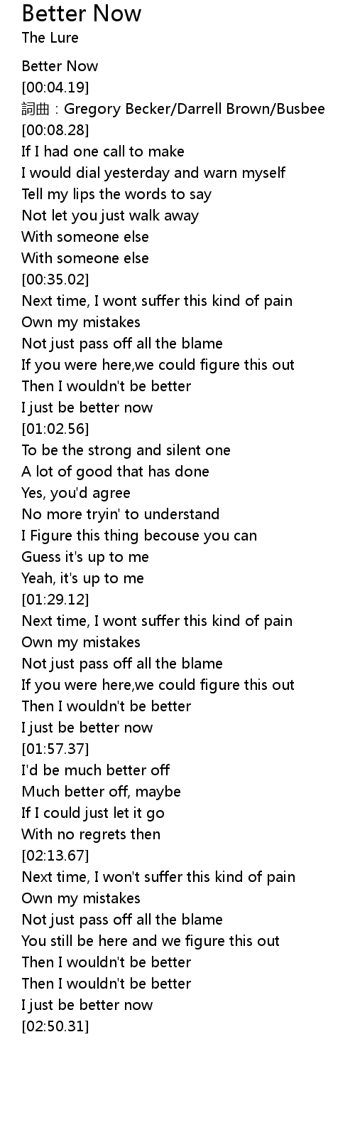 | [00:06.31] | 詞曲:Gregory Becker/Darrell Brown/Busbee |