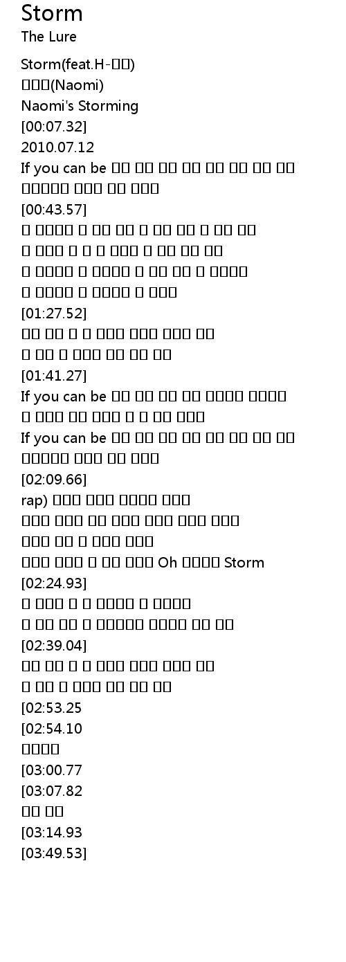 | [02:21.73] | 바람아 불어라 내 몸을 가져봐 Oh 빠져드는 Storm |