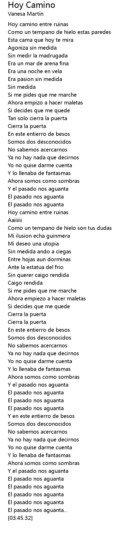 Hoy Camino Lyrics