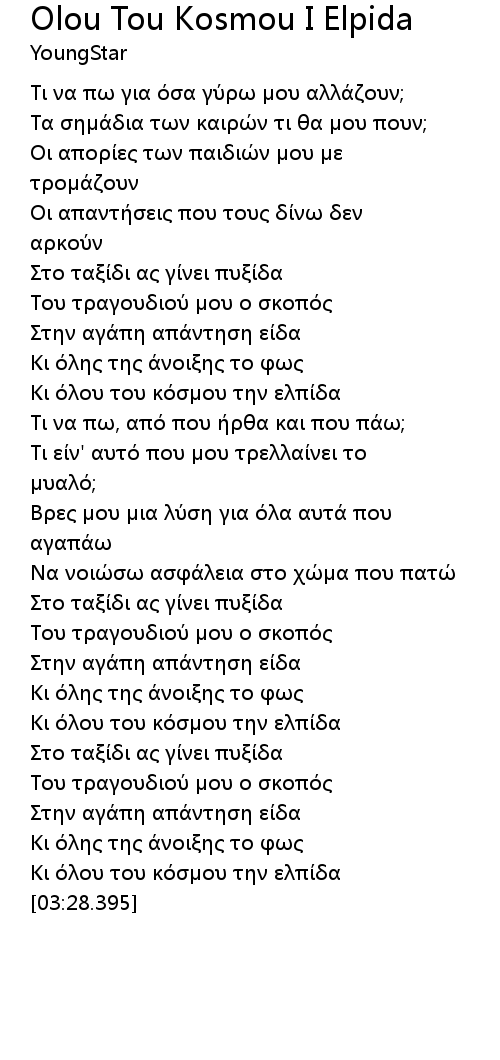 Κι όλου του κόσμου την ελπίδα |
