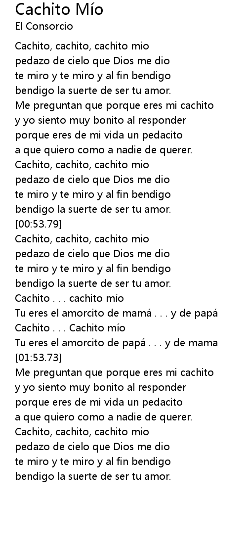 | [00:38.96] | Cachito, cachito, cachito mio |