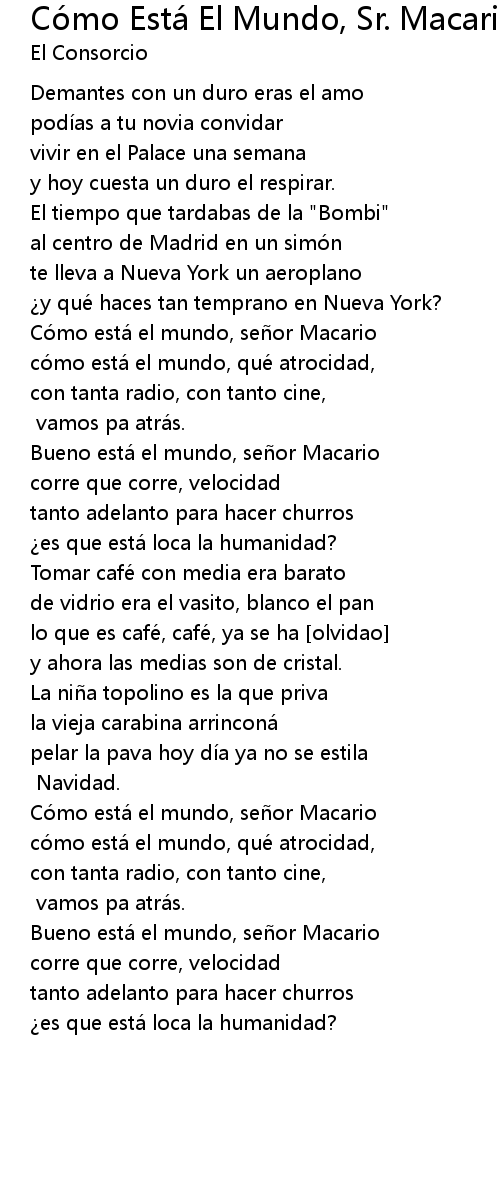| Song | Cómo Está El Mundo, Sr. Macario |