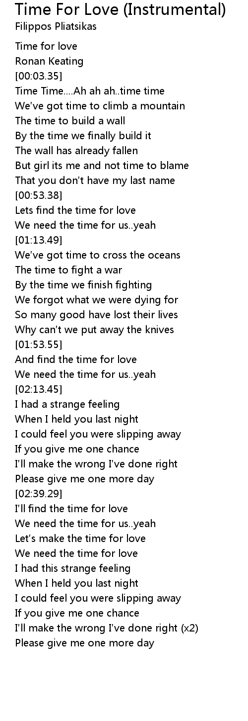 | [00:54.38] | Lets find the time for love |