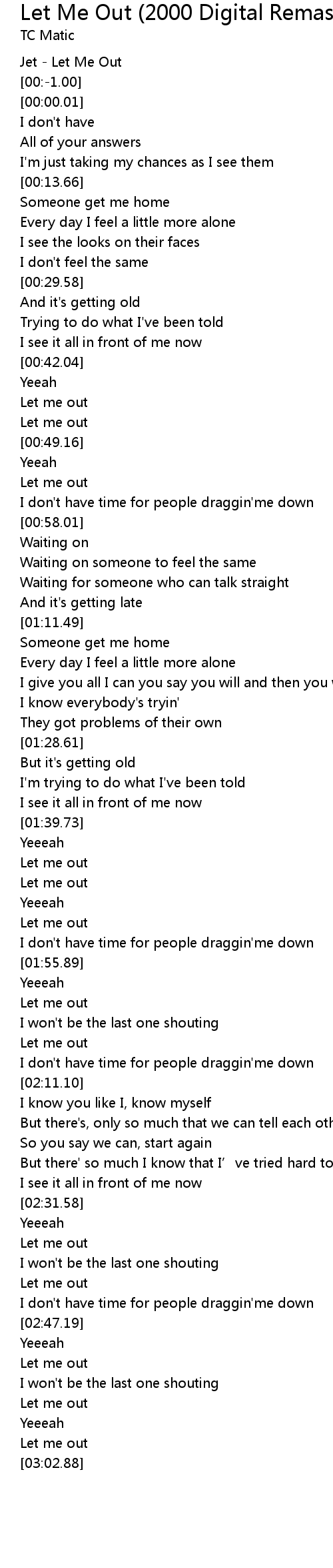| [00:53.41] | I don' t have time for people draggin' me down |