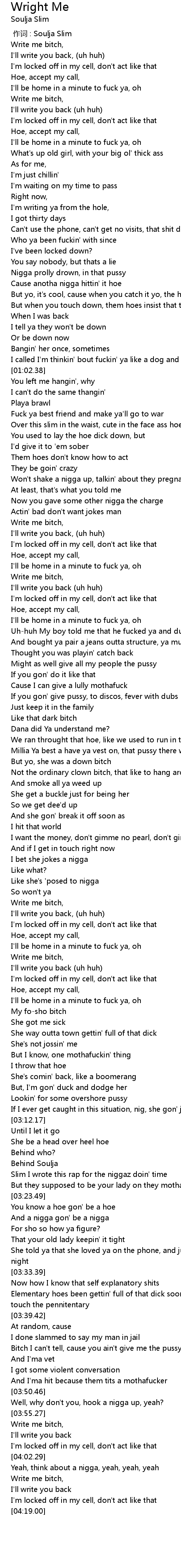 | [02:36.56] | Write me bitch, |