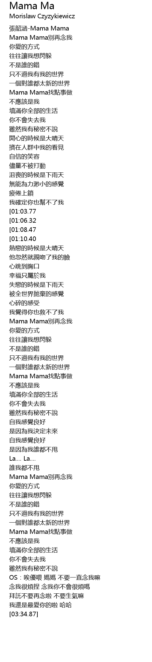 | [00:03.58] | zhāng sháo hán Mama Mama |