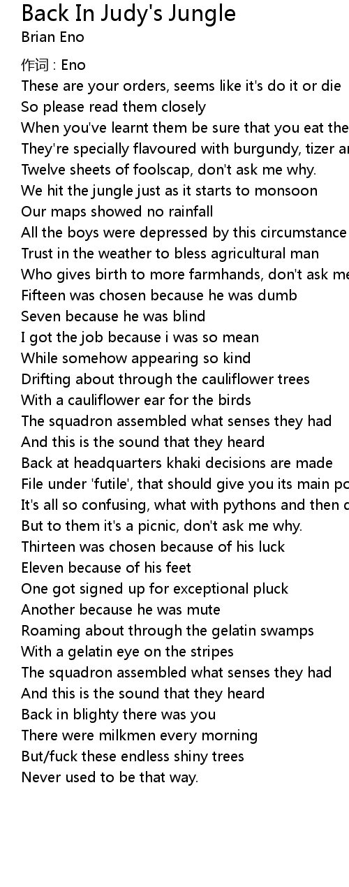 | Song | Back In Judy's Jungle |