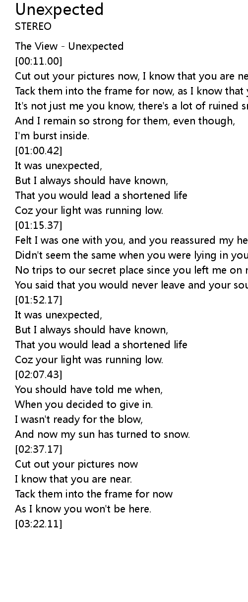 | [00:02.00] | The View - Unexpected |
