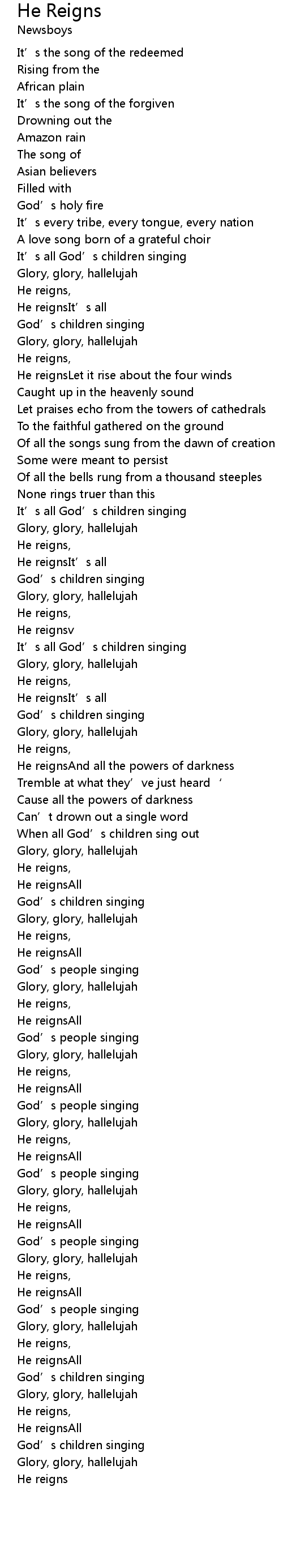 | He reignsIt’s all | |