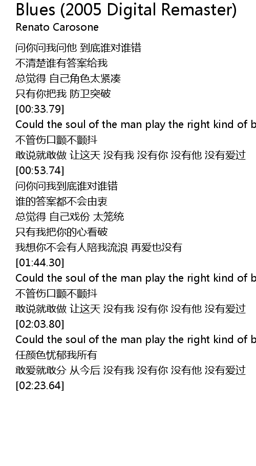 | [02:04.84] | Could the soul of the man play the right kind of blues |