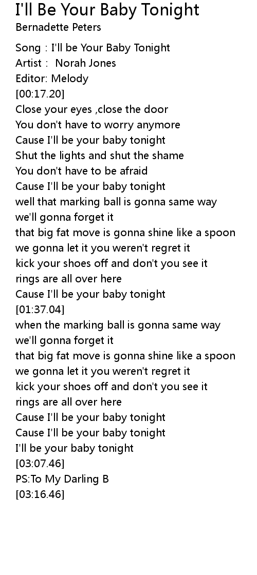 | [00:01.13] | Song: I' ll be Your Baby Tonight |