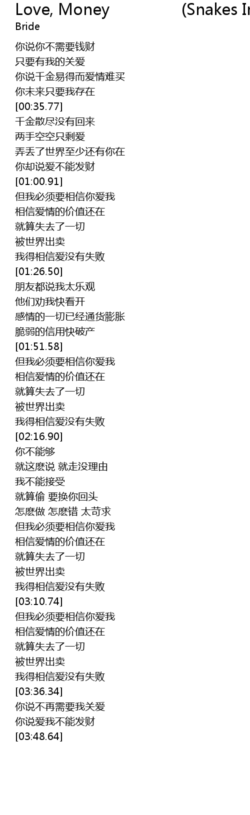 | Song | Love, Money (Snakes In The Playground Album Version) |