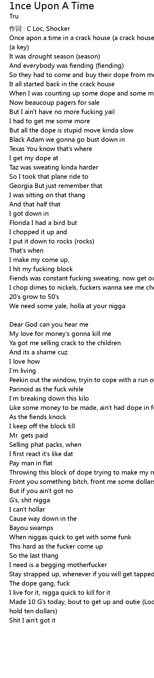 | Once apon a time in a crack house a crack house a nigga was chopping up a key a key | |