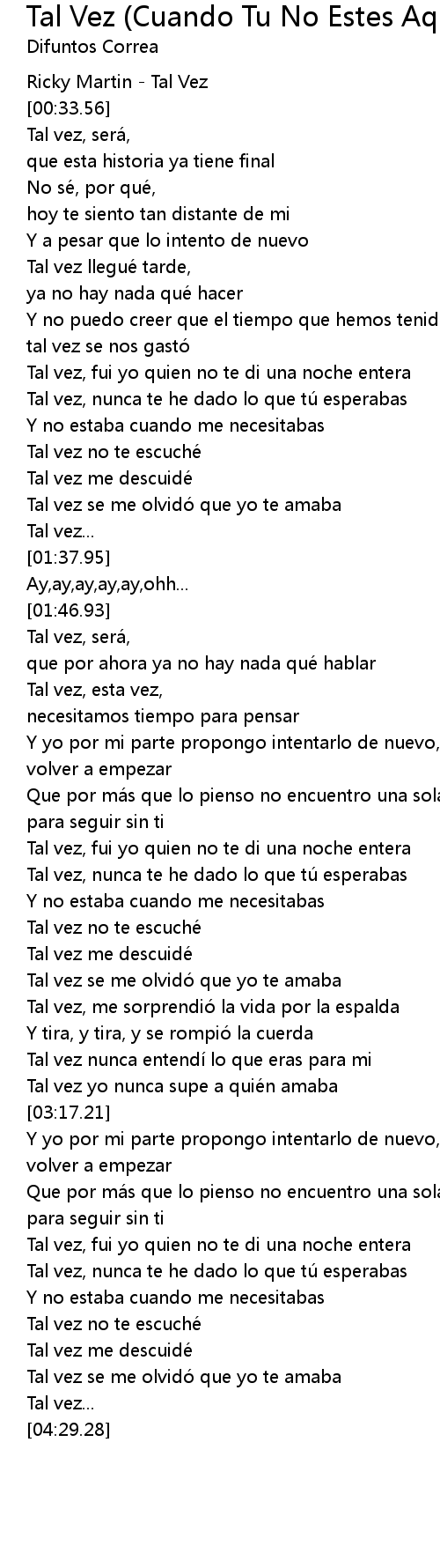 | [00:00.00] | Ricky Martin - Tal Vez |