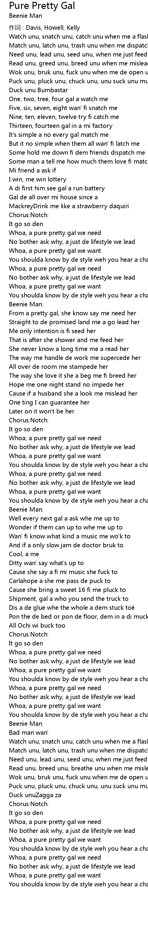 | From a pretty gal, she know say me need her | |