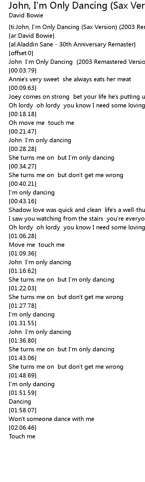[00:00.78] John I'm Only Dancing (2003 Remastered Version) - David Bowie