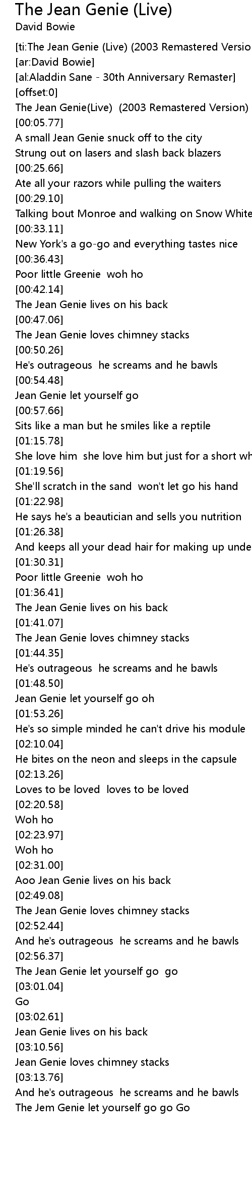 [ti:The Jean Genie (Live) (2003 Remastered Version)] |