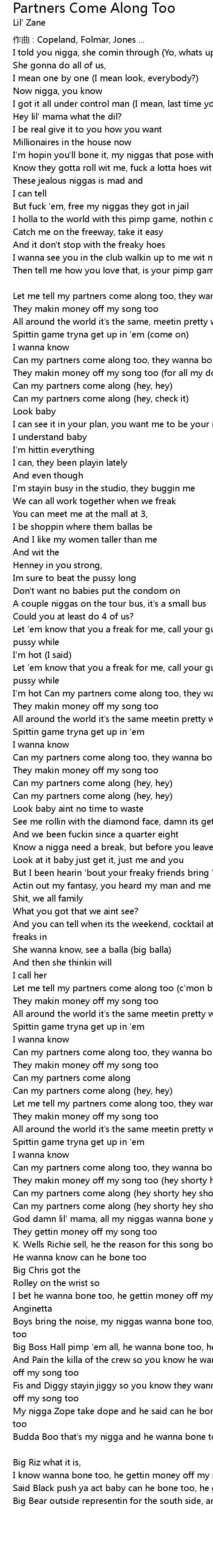 | Let me tell my partners come along too c' mon baby they wanna bone too | |
