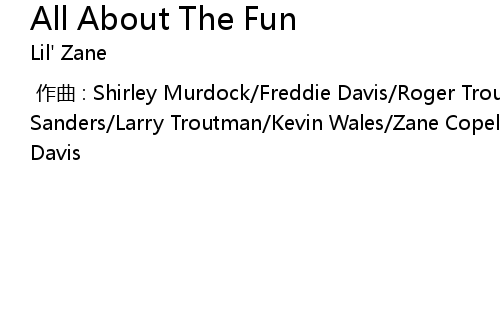 | [00:00.000] | 作曲 : Shirley Murdock/Freddie Davis/Roger Troutman/Troy Sanders/Larry Troutman/Kevin Wales/Zane Copeland Jr./William Lamar/Frederick Davis |