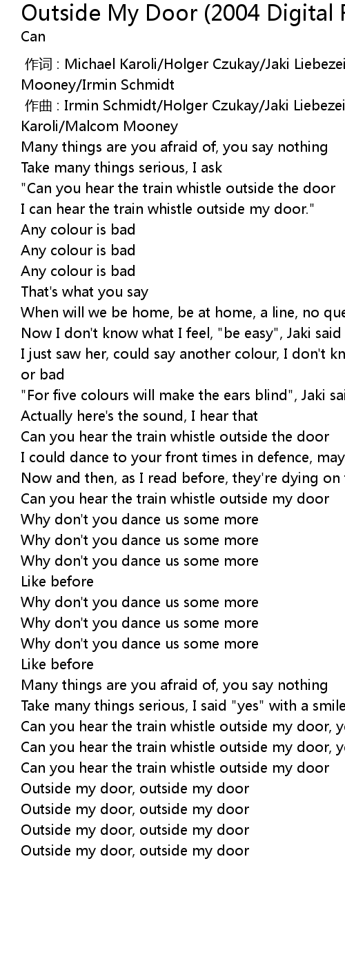 | [00:01.000] | zuo qu : Irmin Schmidt Holger Czukay Jaki Liebezeit Michael Karoli Malcom Mooney |