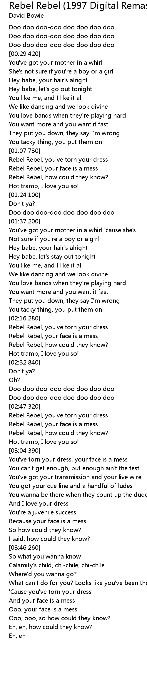 Rebel Rebel, you've torn your dress |