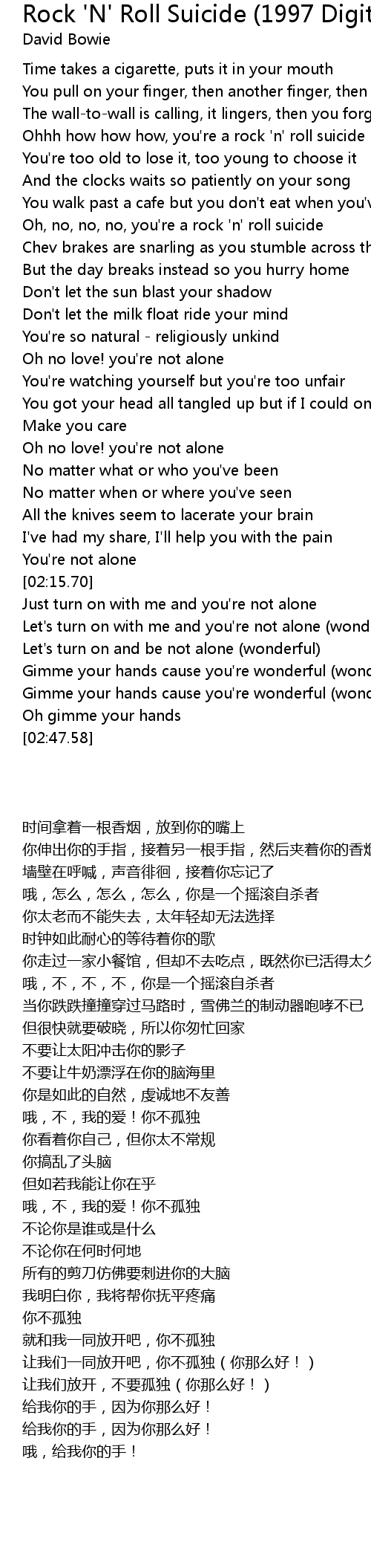Ohhh how how how, you're a rock 'n' roll suicide |