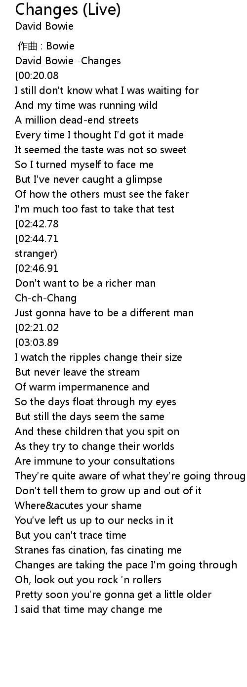 | [02:52.06][02:42.78][02:11.90][02:02.41][01:03.49][00:54.00] | Ch-ch-ch-ch-Changes |