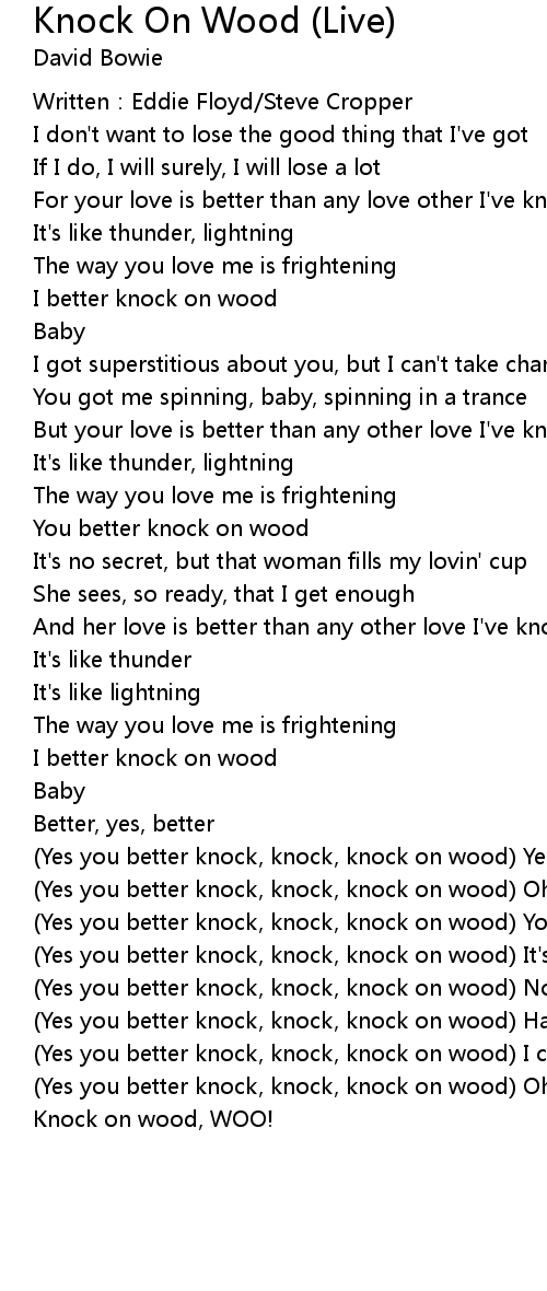 | Yes you better knock, knock, knock on wood Oh, knock on wood | |