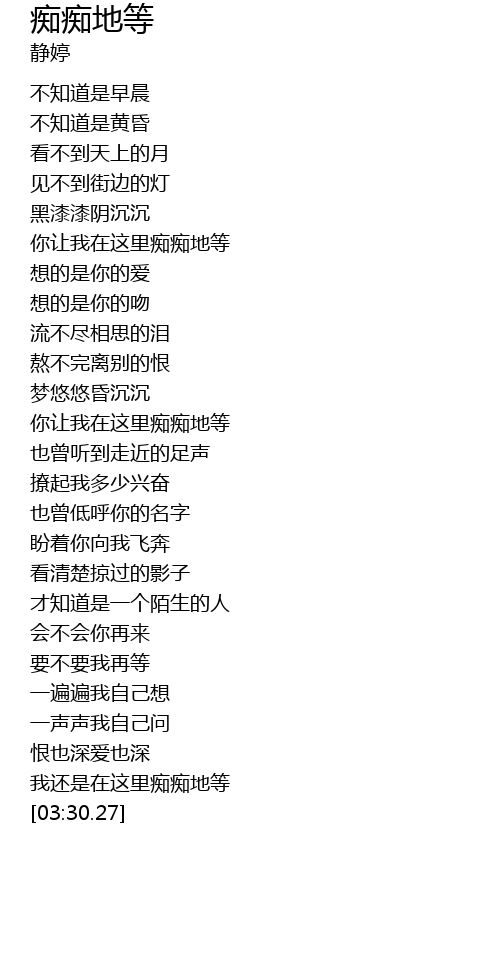 | [03:17.34] | 我还是在这里痴痴地等 |
