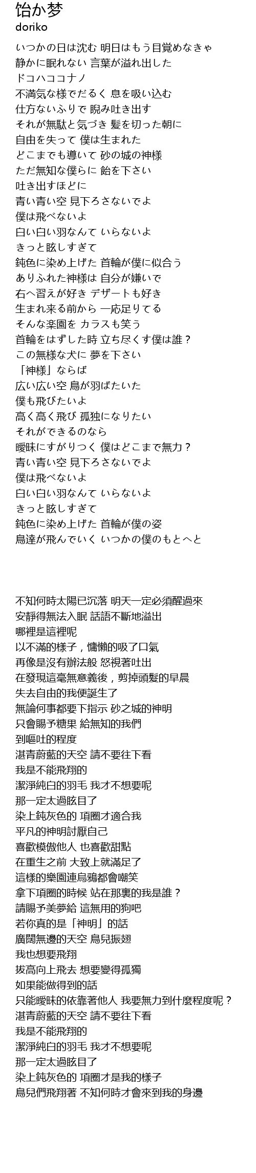 | Song | 饴か梦 |