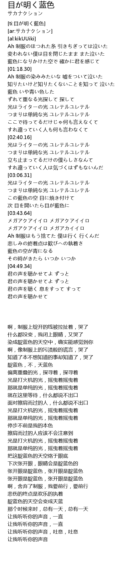 | [03:39.09] | 次 目を開いたら目が藍色に |