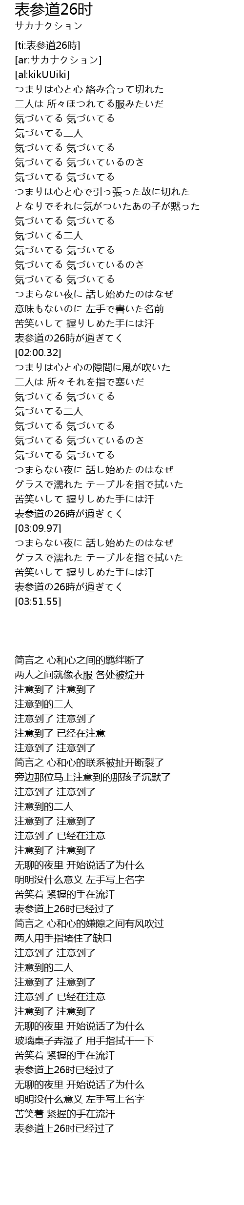 | [03:44.37] | 表参道の26時が過ぎてく |